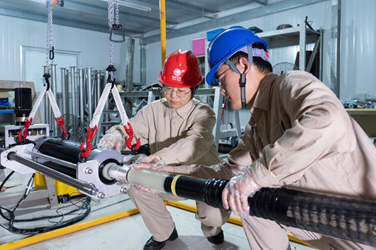 2006年,何光华带领团队开展科研攻关。没有现成数据,没有可借鉴的先例,他们就搭起工棚现场分析,泡在图书馆查资料,深入其他行业调研,研制出输送机组多层升降平台和通用型横臂固定装置,实现电缆在通道内高度、宽度上的无级调节,保证电缆无损敷设一次到位。经过8年攻坚,何光华团队首创的“高落差高压电缆线路无损施工技术”终于取得成功,将单段电缆长度从三四百米延长至1500米。该项技术于2019年荣获国家科学技术进步奖二等奖,如今已应用于国内外多个行业,并输出到德国、俄罗斯、新加坡等多个国家。