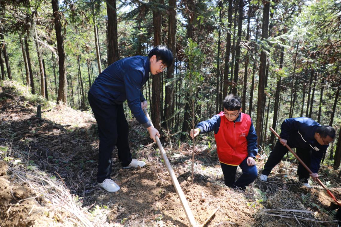 在“三棵树”旁的植树点,全体人员分工协作、干劲十足,挥锹铲土、扶苗填坑、踩实浇水,每一道工序都认真细致、有条不紊。经过一番热火朝天的劳作,30株树苗迎风挺立,为春日山林再添新绿,也种下了绿色发展、生态惠民的美好希望。