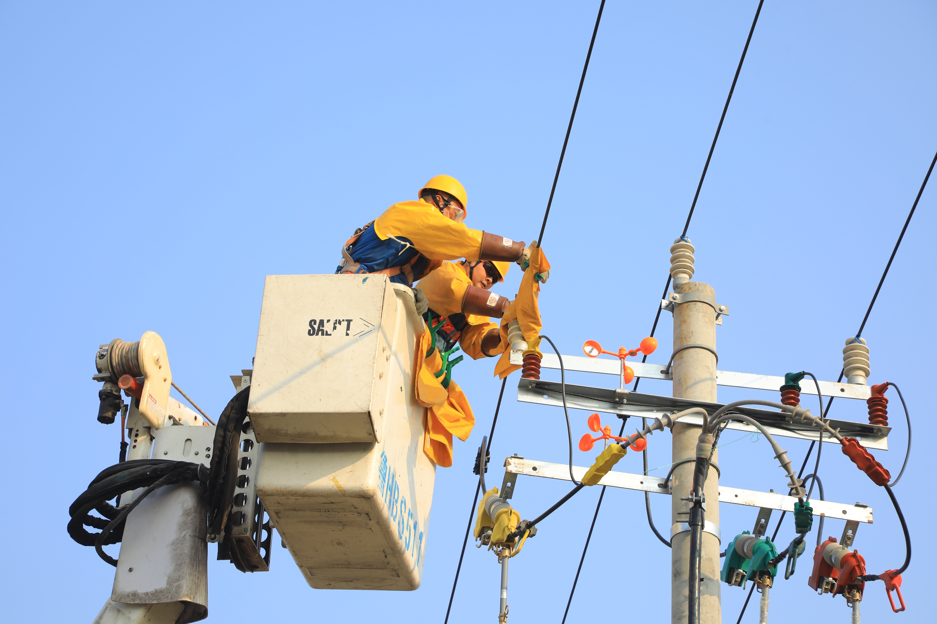 当天9时许,梁山公司作业人员来到工作现场,工作负责人召开班前会,逐项梳理整个作业流程,细致剖析高空带电操作、设备接线等关键环节的安全风险点,着重强调相应的注意事项,确保人人心中有数、事事执行到位。作业人员还对绝缘工具、防护装备以及作业车辆进行严格细致检查和调试,确保其性能良好、安全可靠。