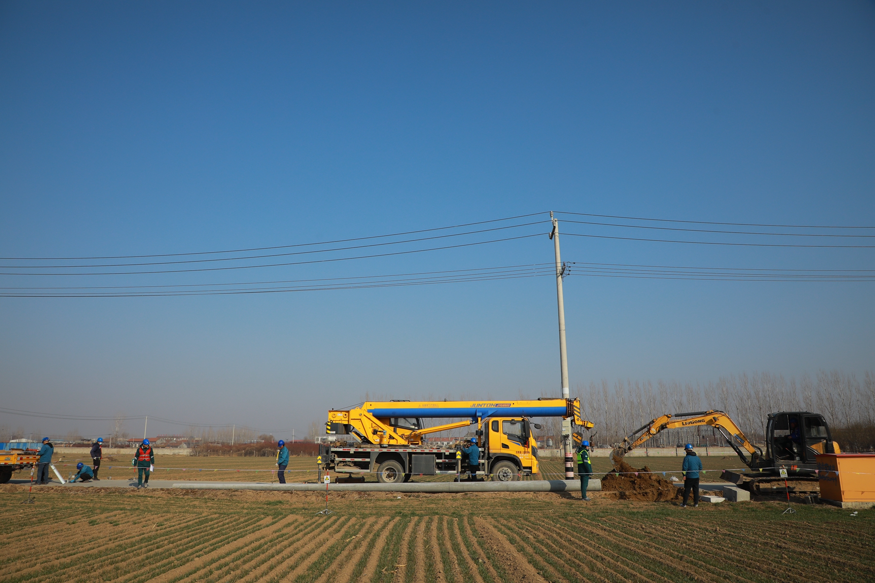 当天9时许,施工人员按照计划时间来到施工现场,做好一切安全措施后,施工作业全面展开。在吊车和挖掘机的协同配合下,一基基电杆缓缓竖起。施工现场,强化作业全过程、全时段、全员安全管控,严格执行到岗到位制度,安全督查人员现场监督,重点检查“两票”执行情况以及组织、技术措施落实情况,确保安全施工。施工人员严格遵守标准化作业流程,对基坑开挖深度、电杆组立角度等关键施工环节进行严格把控,每一道工序都做到精益求精,全力保证工程施工质量。