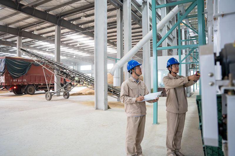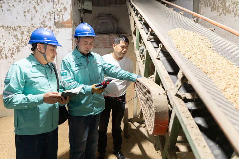 国网陕西汉中供电公司员工走进粮食加工企业检查用电设备。