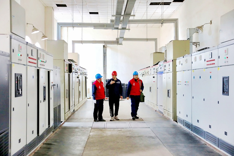 国网辽宁朝阳供电公司员工在凤凰新城热力有限公司排查用电隐患。