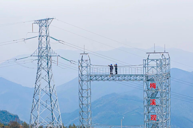 国网浙江电力员工在梅溪观冰站开展线路特巡。