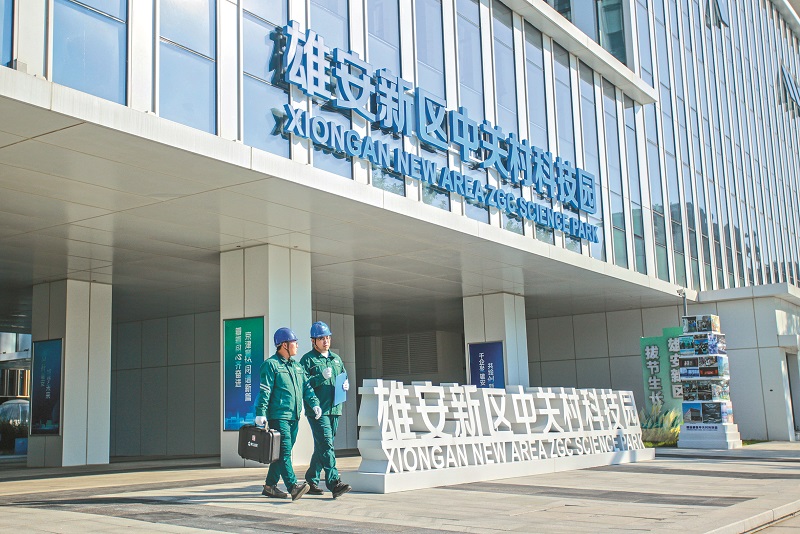 国网河北雄安新区供电公司员工走访中关村科技园了解用电需求。
