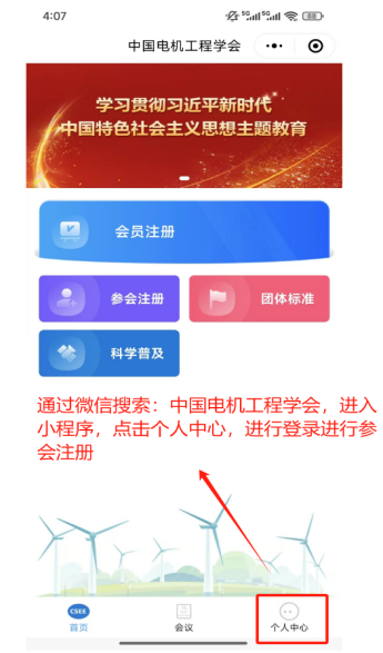 1.微信搜索中国电机工程学会小程序或者扫微信小程序二维码。