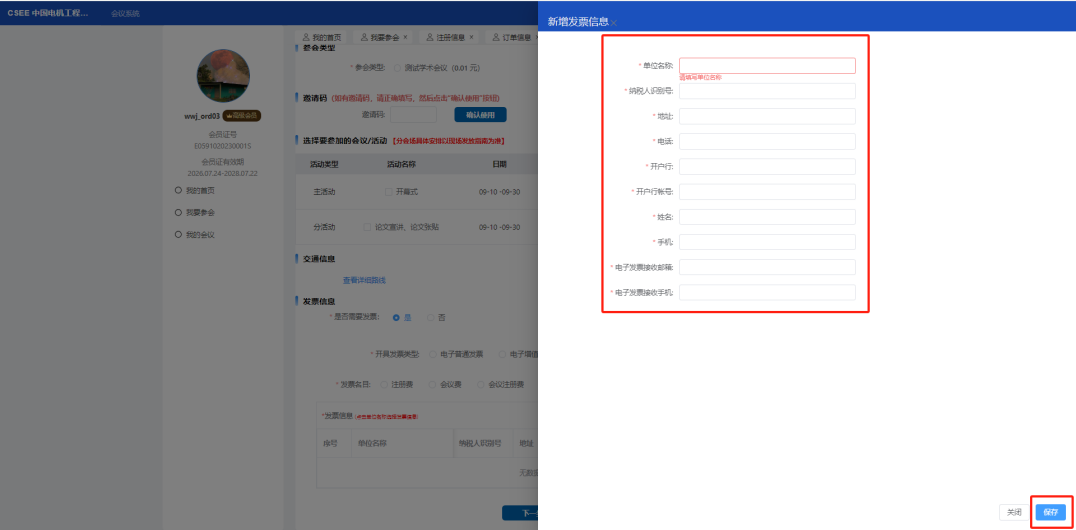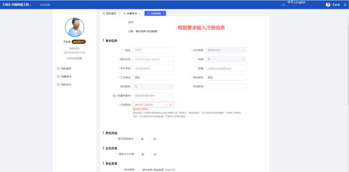 3.完成信息填写、支付。注册成功后,在个人中心、我的会议查看订单信息。
