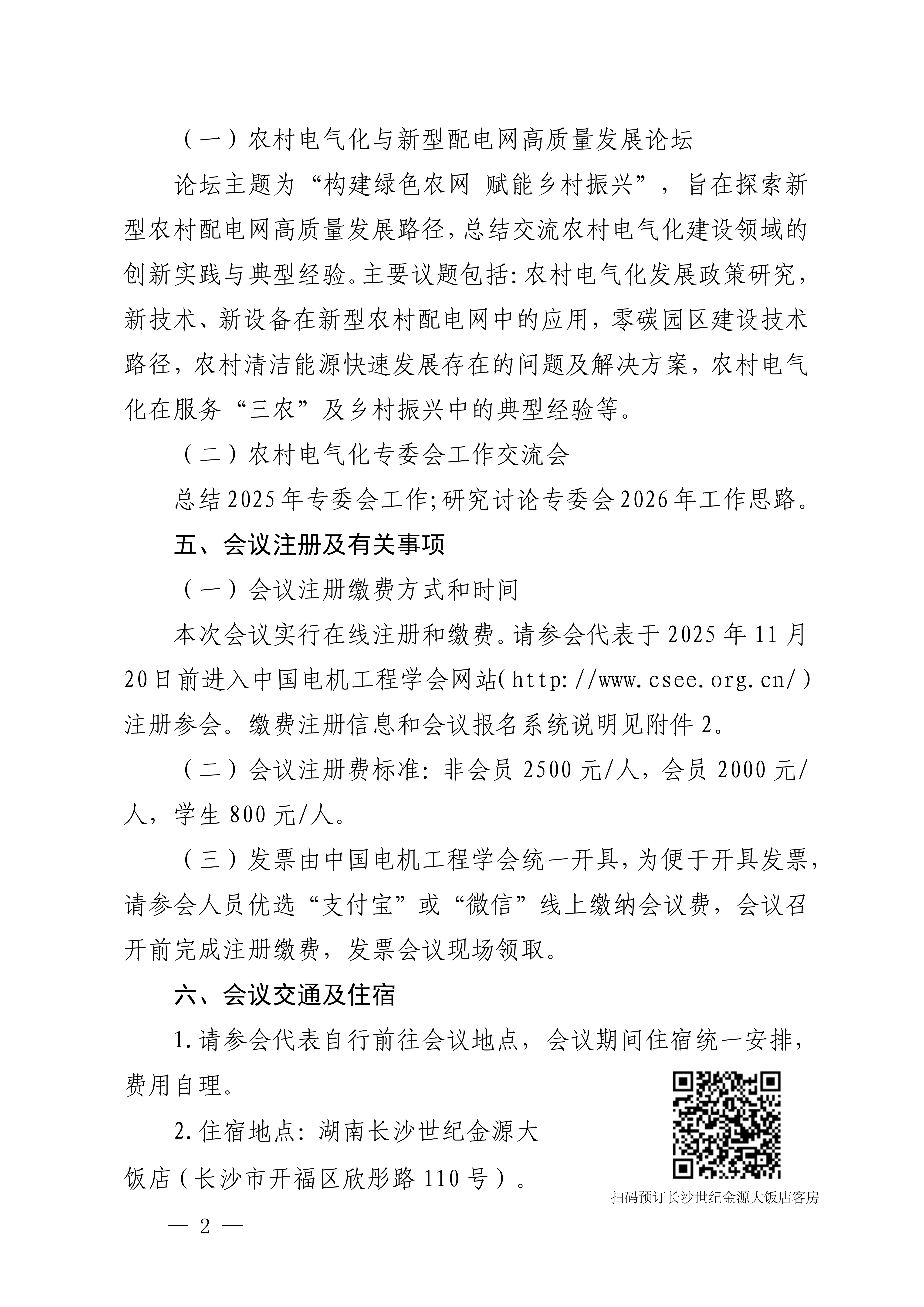 会议注册缴费方式和时间:本次会议实行在线注册和缴费。请参会代表于2025年11月20日前进入中国电机工程学会网(http://www.csee.org.cn/)注册参会。缴费注册信息和会议报名系统说明见附件2。