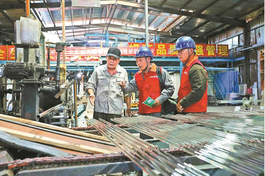 国家电网江西电力(月湖区园区)井冈先锋共产党员服务队队员到制造企业车间开展用电服务。