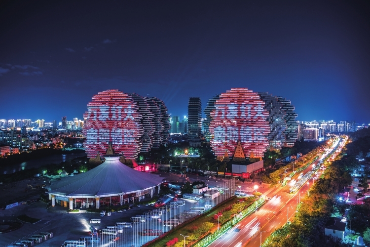 华灯初上,三亚美丽之冠大树酒店“万家灯火,南网情深”流光溢彩。(资料图片)
