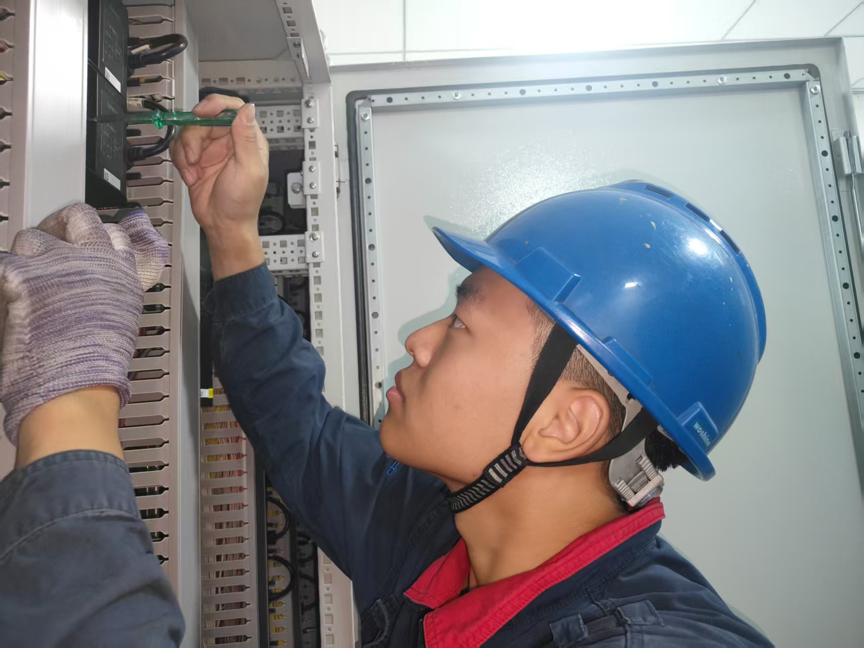 青工严格遵守操作规程,进行作业前验电工作