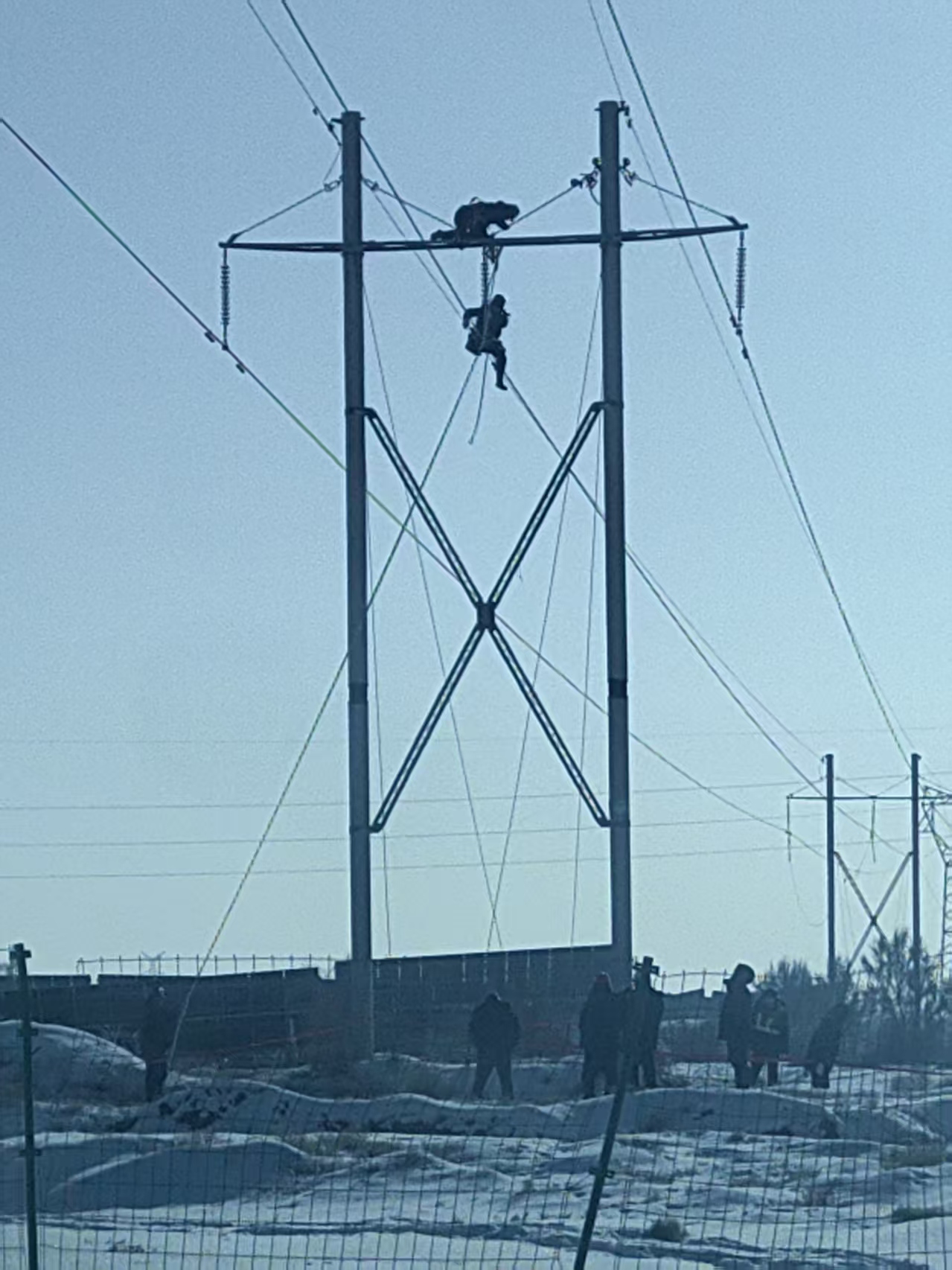 面对突发故障,线路工区立即启动低温冰冻天气应急预案。尽管故障点地处野外,极端严寒天气给作业带来巨大困难和风险,但抢修人员克服不利条件,迅速集结并赶赴现场。
