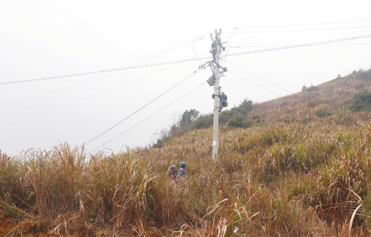云南电网昭通永善供电局对10千伏线路进行抗冰加固。 吴学迁 摄