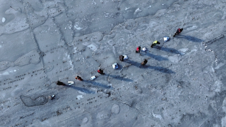 包头威俊150万千瓦独立储能电站500千伏线路工程,也因特殊地理和严寒遭遇难题。据广东电网能源发展公司新能源与国际业务公司工程部部长吴宝平介绍,N5号塔附近一片水域冰层最薄处仅20厘米,冰层之下的水深平均30厘米,最深处则有80厘米。大型车辆无法靠近,小推车又在冰面打滑,只能靠10多人组成人力运输队,徒手拖拽塔材。每人每次背30—50公斤,一天往返三四十趟,步行超3万步,脚底冻得冰凉。就这样,20余吨组塔钢材被一块块拉到塔基旁。