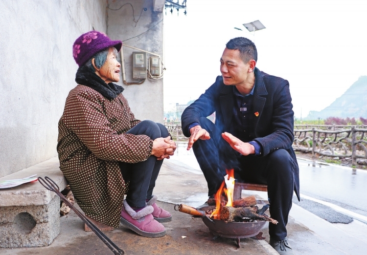 全国人大代表韦恒焦与村民交流。 罗倩尹 摄