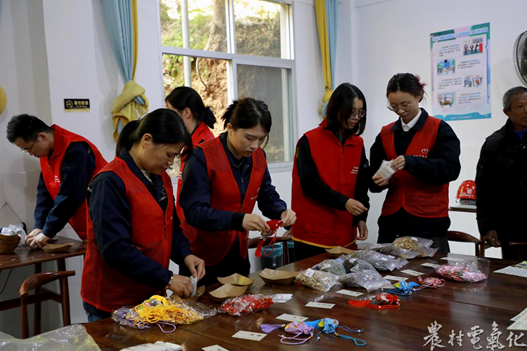 另一边,志愿者们与老人围坐在一起,根据功效不同,搭配作用不同的香草,并将碾碎后的香草装入香袋中后送给老人们,也为老人们送上平安健康的祝福。此外,志愿者们还为老人们送上米、牛奶等生活物资,让老人在感受节日氛围的同时,切实体会到来自社会的关爱。