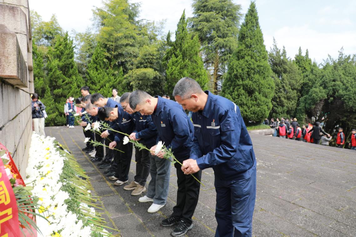 紧接着,全场人员整理着装,神情肃穆,整齐列队于烈士纪念碑前,为英勇献身的革命先烈默哀三分钟,以最崇高的敬意悼念先烈英灵、寄托深切哀思。