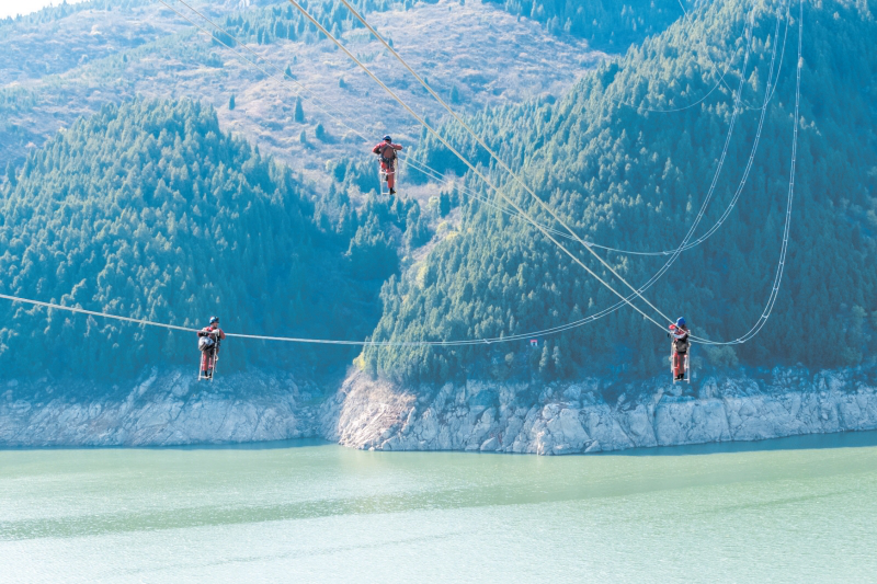 国网十堰供电公司员工在220千伏输电线路安装附件。