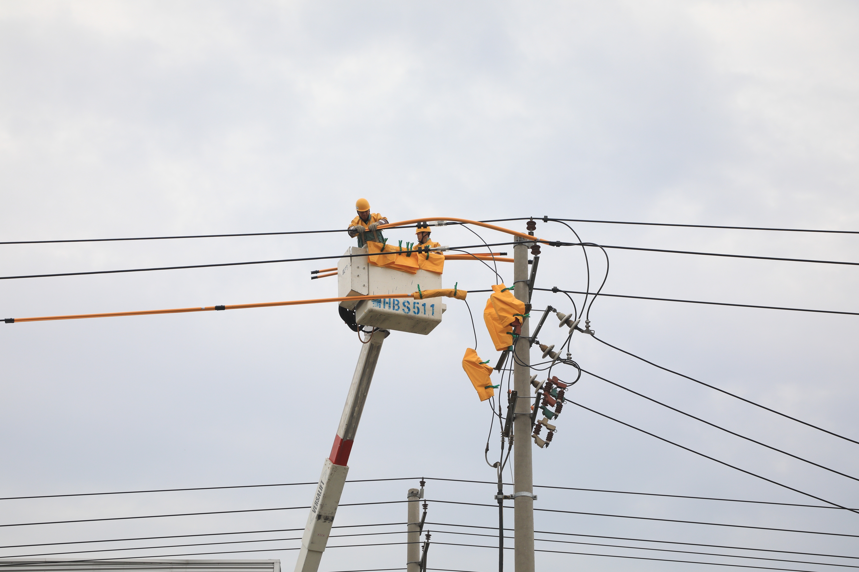 早已全副武装好的马传凯和郑来喜,随着柏学燕一声指令,带电作业车大臂缓缓转动、平稳上升,将两人安全地送到12米高空。他们默契配合,手中的绝缘遮蔽罩、绝缘毯如同“防护铠甲”,将带电部位层层包裹,确保作业全程万无一失。