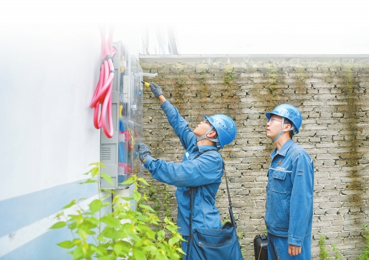 在贵州省安顺市西秀区轿子山镇石锦村本寨组,安顺市郊供电局工作人员开展定期上门服务,对供电设备、线路开展安全隐患排查。 陈娟 摄