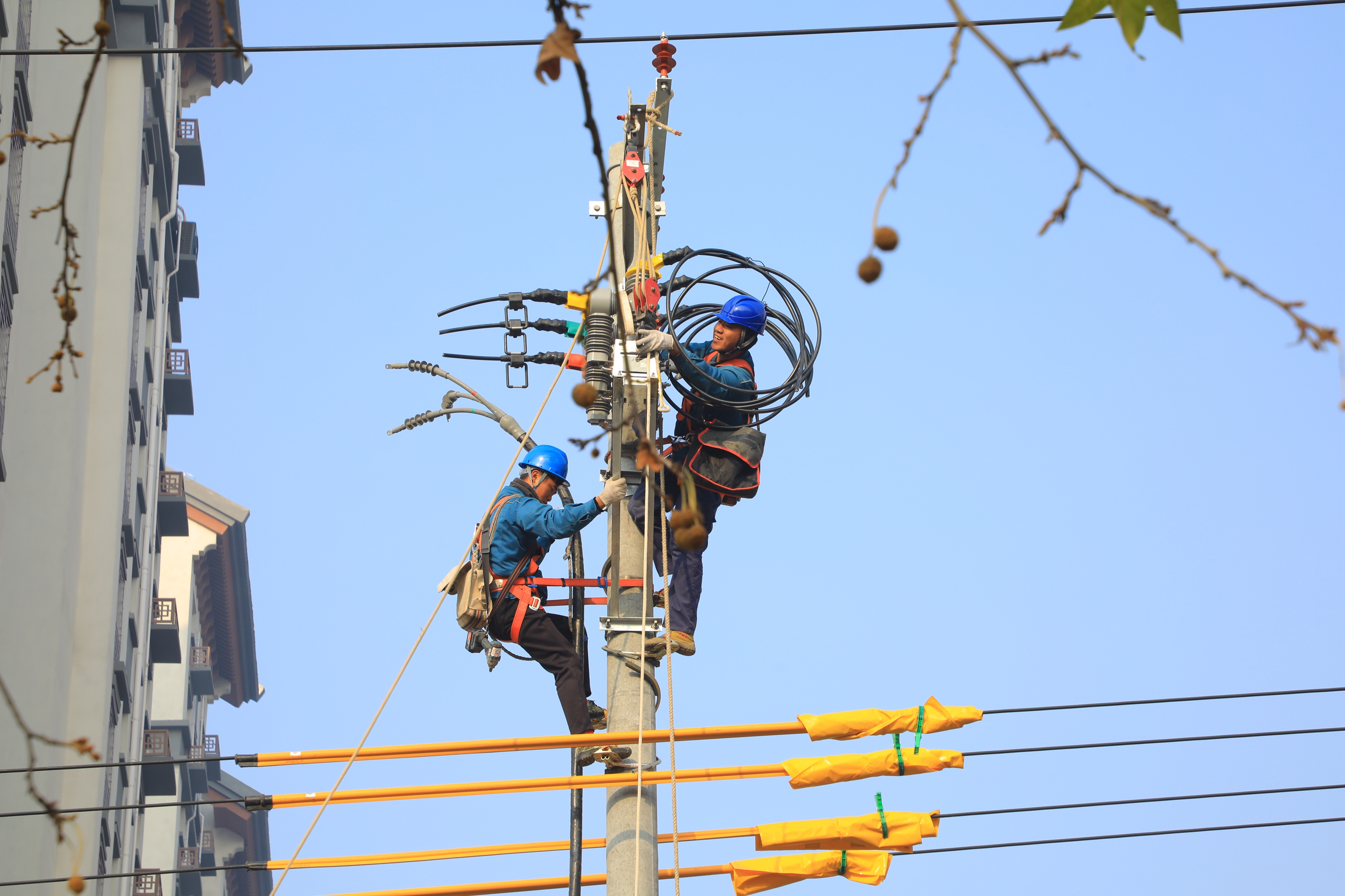 16日上午9时许,施工人员准时到达现场,工作负责人对本次作业任务进行详细解读,针对潜在的安全风险点逐一进行分析,明确相应的预控措施,确保每一位作业人员对安全注意事项全面了解。在各项安全措施准备就绪后,施工作业全面展开,在保证安全的前提下,加快推进施工进度。杆上作业人员熟练地安装横担、金具和一二次融合断路器等,杆下人员紧密协作,传递所需材料和工器具,整个施工过程安全规范,秩序井然。
