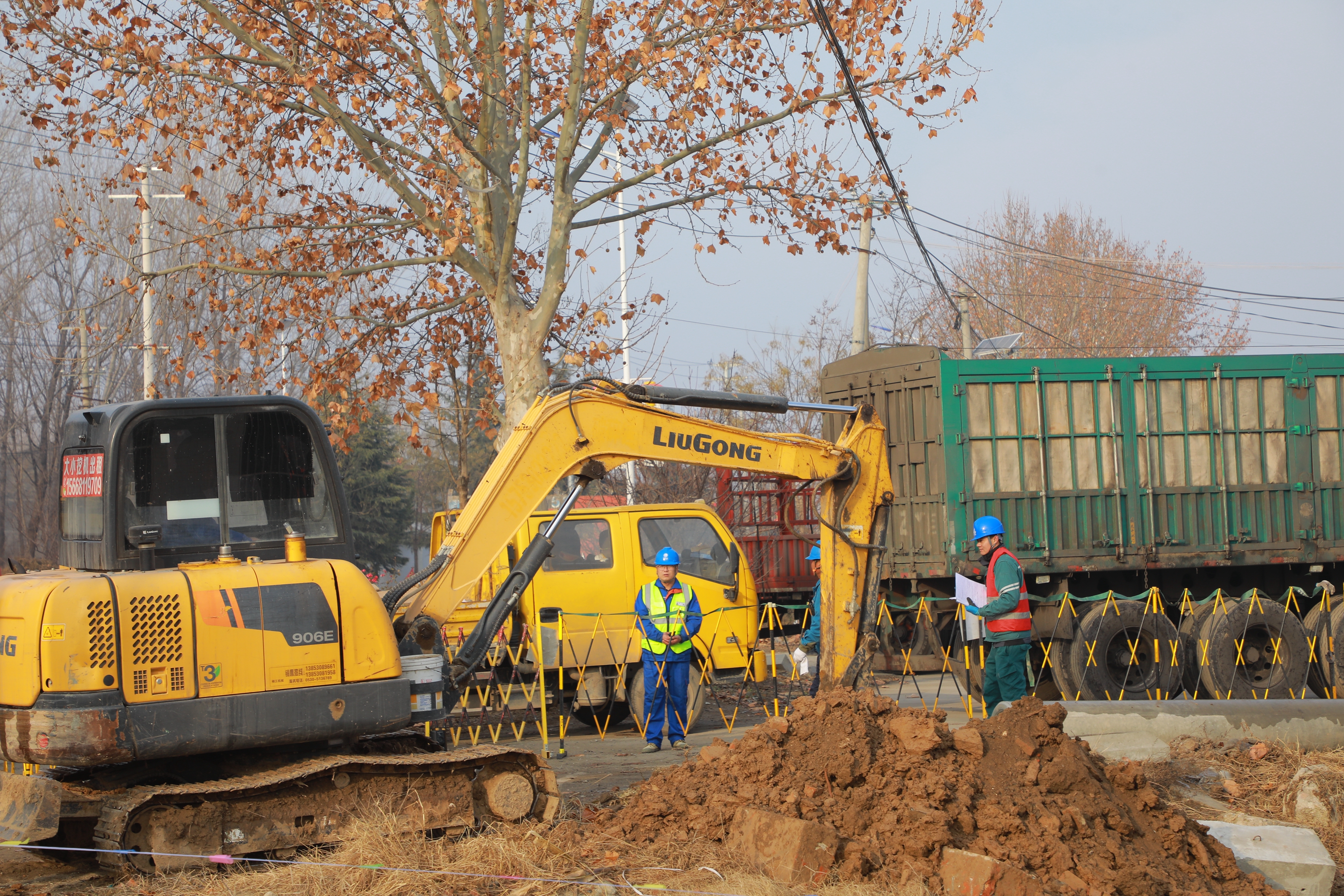 在各项安全保障措施全面落实到位后,施工作业全面展开。施工现场秩序井然,挖掘机发出阵阵轰鸣声,挥舞着巨大的机械臂挖掘杆坑。吊车伸展着长长的吊臂,将沉重的电杆平稳吊起,在施工人员的精准指挥下,稳稳地放置在预定坑位。随后,立杆、校正垂直度、回填土……每一道工序都环环相扣、有条不紊,施工进度稳步推进。