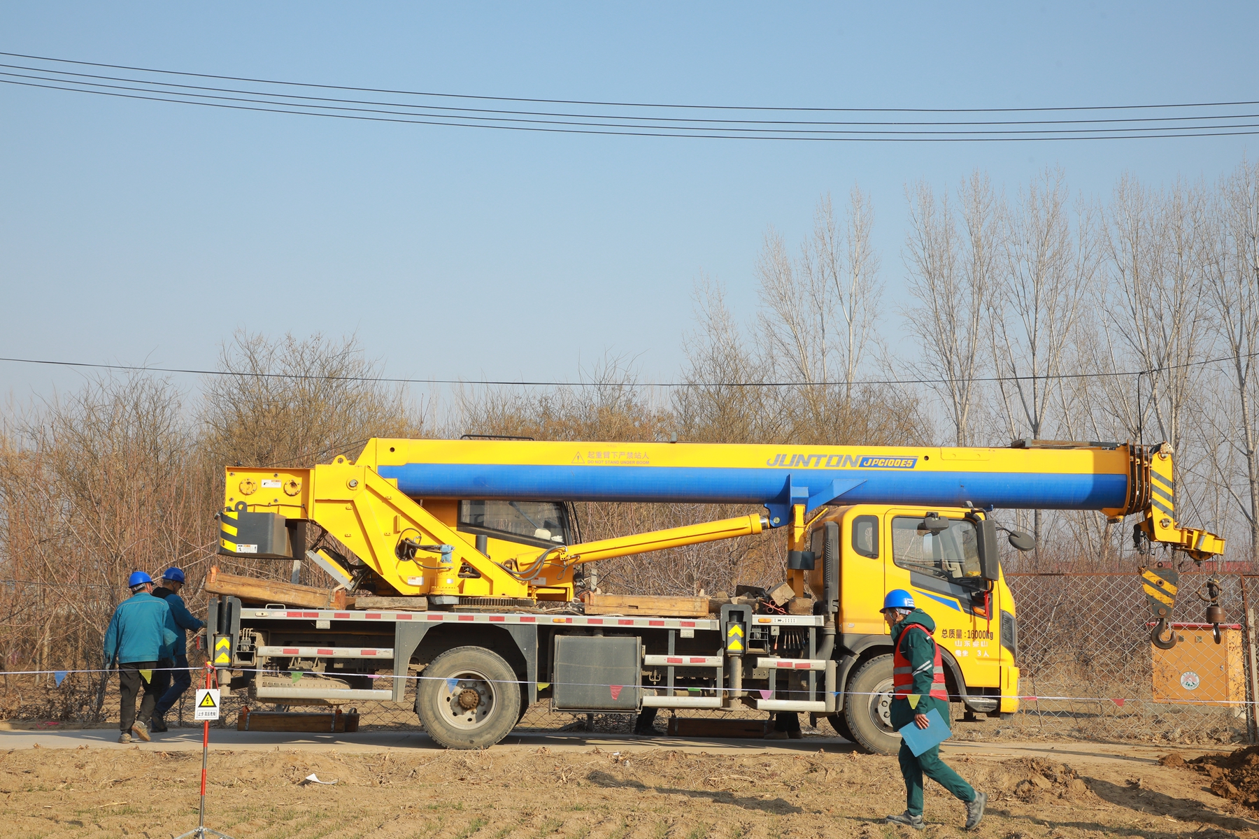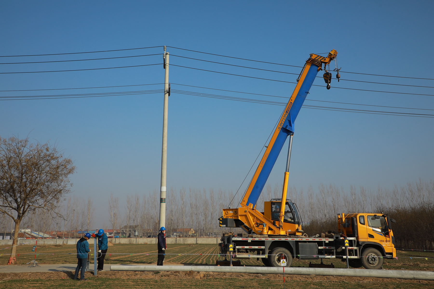 当天9时许,施工人员按照计划时间来到施工现场,做好一切安全措施后,施工作业全面展开。在吊车和挖掘机的协同配合下,一基基电杆缓缓竖起。施工现场,强化作业全过程、全时段、全员安全管控,严格执行到岗到位制度,安全督查人员现场监督,重点检查“两票”执行情况以及组织、技术措施落实情况,确保安全施工。施工人员严格遵守标准化作业流程,对基坑开挖深度、电杆组立角度等关键施工环节进行严格把控,每一道工序都做到精益求精,全力保证工程施工质量。