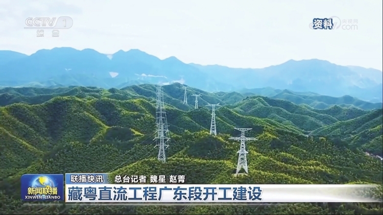 1月21日,央视《新闻联播》报道藏粤直流工程广东段开工建设。