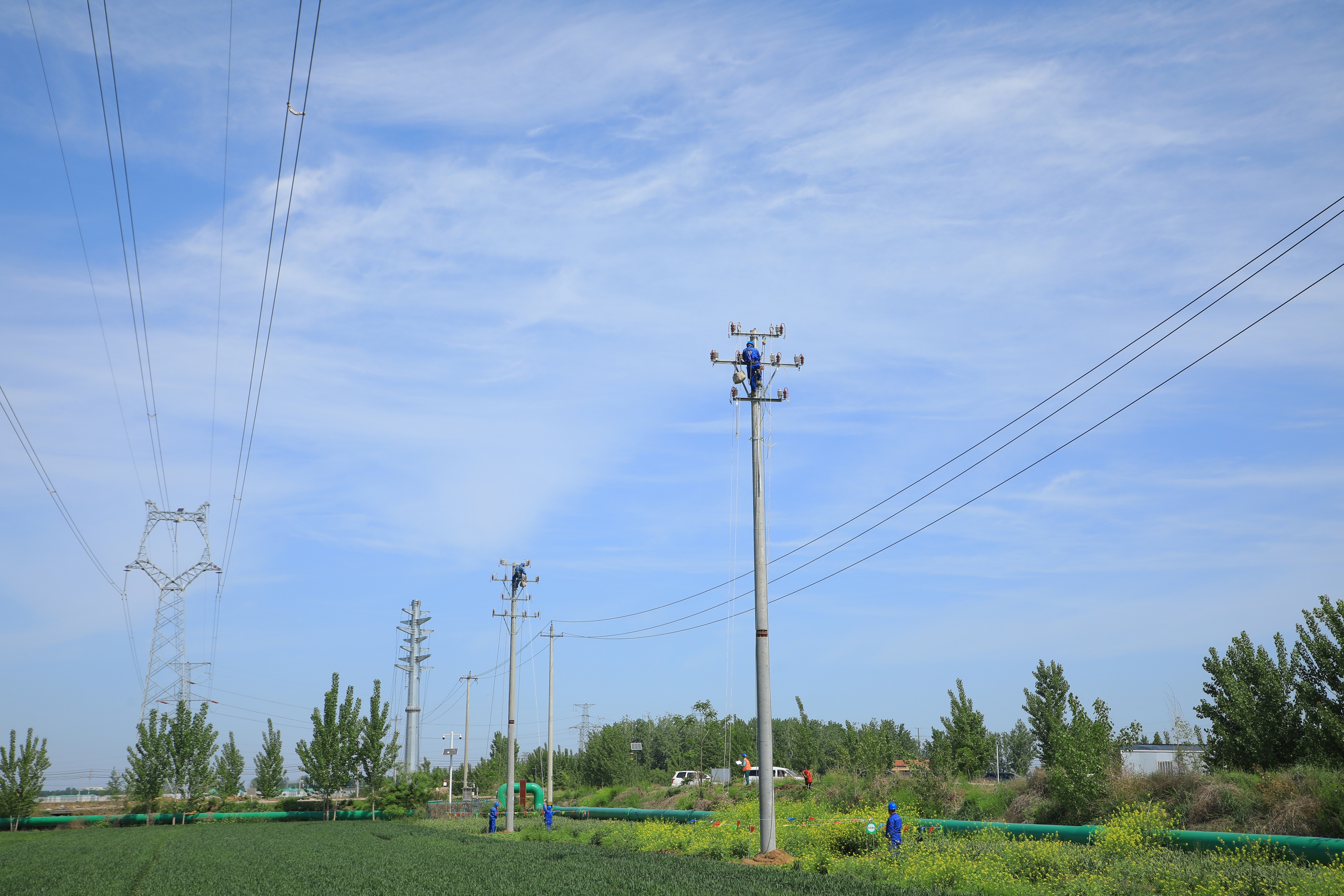 农村电气化信息网讯:(通讯员 吴敬华)4月22日,国网济宁梁山县供电公司施工人员在杨营镇对同杆四回10千伏陈营Ⅰ、Ⅱ线和王庄Ⅰ、Ⅱ线18号杆至32号杆架线施工,加快推进线路建设,优化配网网架结构,全力支撑经济开发区企业生产用电,并为后续企业引进提供不竭能源动力。