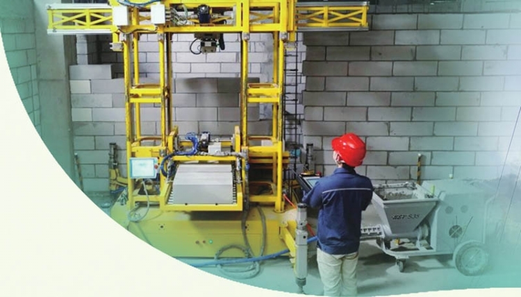 220千伏庆盛枢纽输变电工程建设采用“鲁班”砌墙机器人。 广州供电局供图