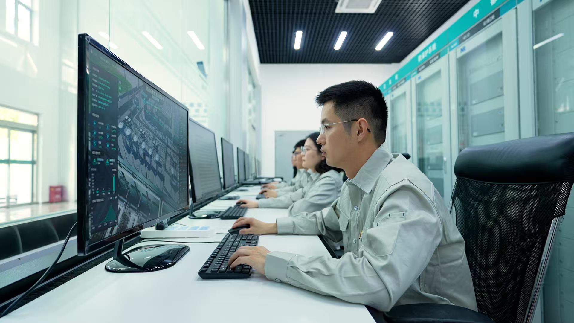 国网冀北电科院技术人员在张北柔直工程“虚拟实验室”开展仿真实验。