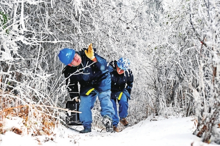 元旦假日期间,南网超高压公司贵阳局黎平分局员工开展500千伏黎桂乙线防冰特巡。 石庆喜 摄
