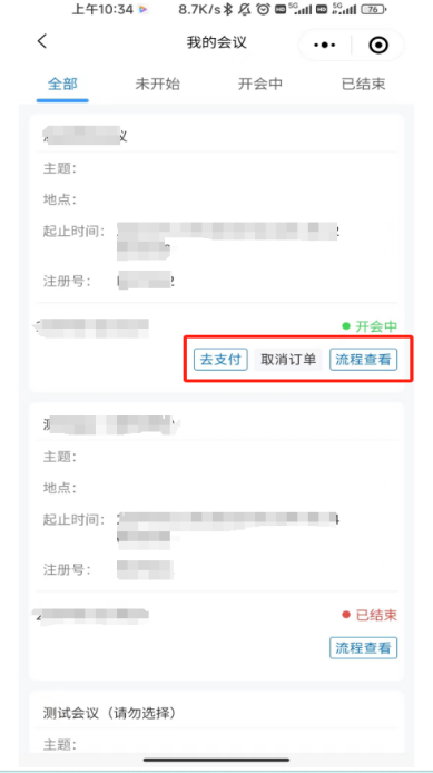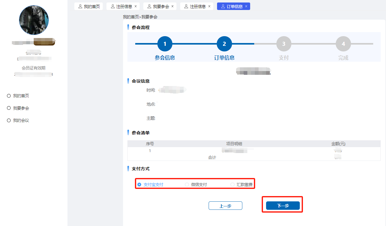 3.完成信息填写、支付。注册成功后,在个人中心、我的会议查看订单信息。
