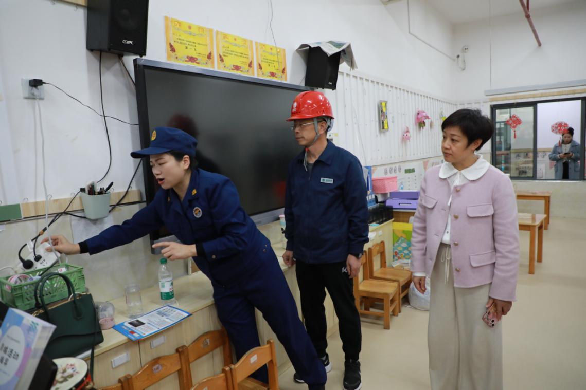 活动当天,检查组分别对狮城中心幼儿园的全电厨房、教室插座线路等关键区域进行“地毯式”检查,细致排查线路老化、设备过载、应急照明失效等隐患;了解名仕广场沿街商铺及施工用地用电负荷、配电设施运行状态,消防人员核查消防通道畅通情况、灭火器有效性;深入自建民房,重点查看电线老化、插座超负荷使用等情况、并耐心讲解燃气灶具正确使用方法与初期火灾扑救方法。