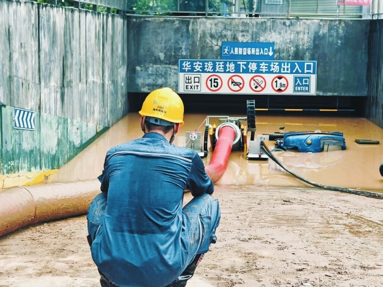 受水浸影响,叠馨居小区地下配电房的变压器受损严重,存在较大隐患,东莞东南区供电局当机立断——迁移配电房、更换变压器。没有吊车,10余人便肩扛手抬,将2台5吨重的老旧变压器抬上地面。顾不上喘息,随即来到新规划的地面配电房,安装2台全新的1250千伏安箱式变压器,大大降低水浸风险。而在江海天悦小区,两台排涝车夜以继日运转,佛山禅城供电局支援队伍负责人李春晖敏锐地察觉到,车辆尾气堆积在地下,可能存在有害气体。为不影响抢修进度,李春晖提前放入通风设备,确保在水退后第一时间开展作业。
