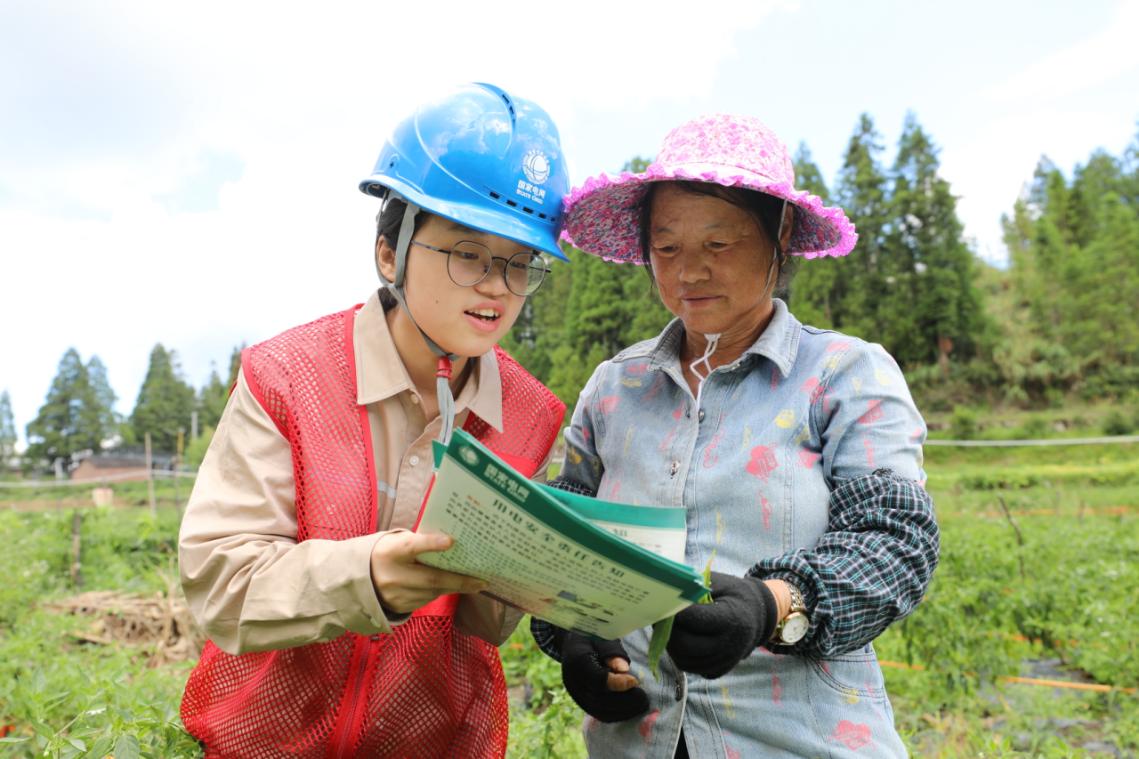 在辣椒田边,该公司服务队队员们为农户发放安全用电宣传手册,讲解秋收期间安全用电知识,重点提醒农户电力设施周围勿堆积干草杂物,避免在线路底下焚烧杂物,防范触电和火灾风险。