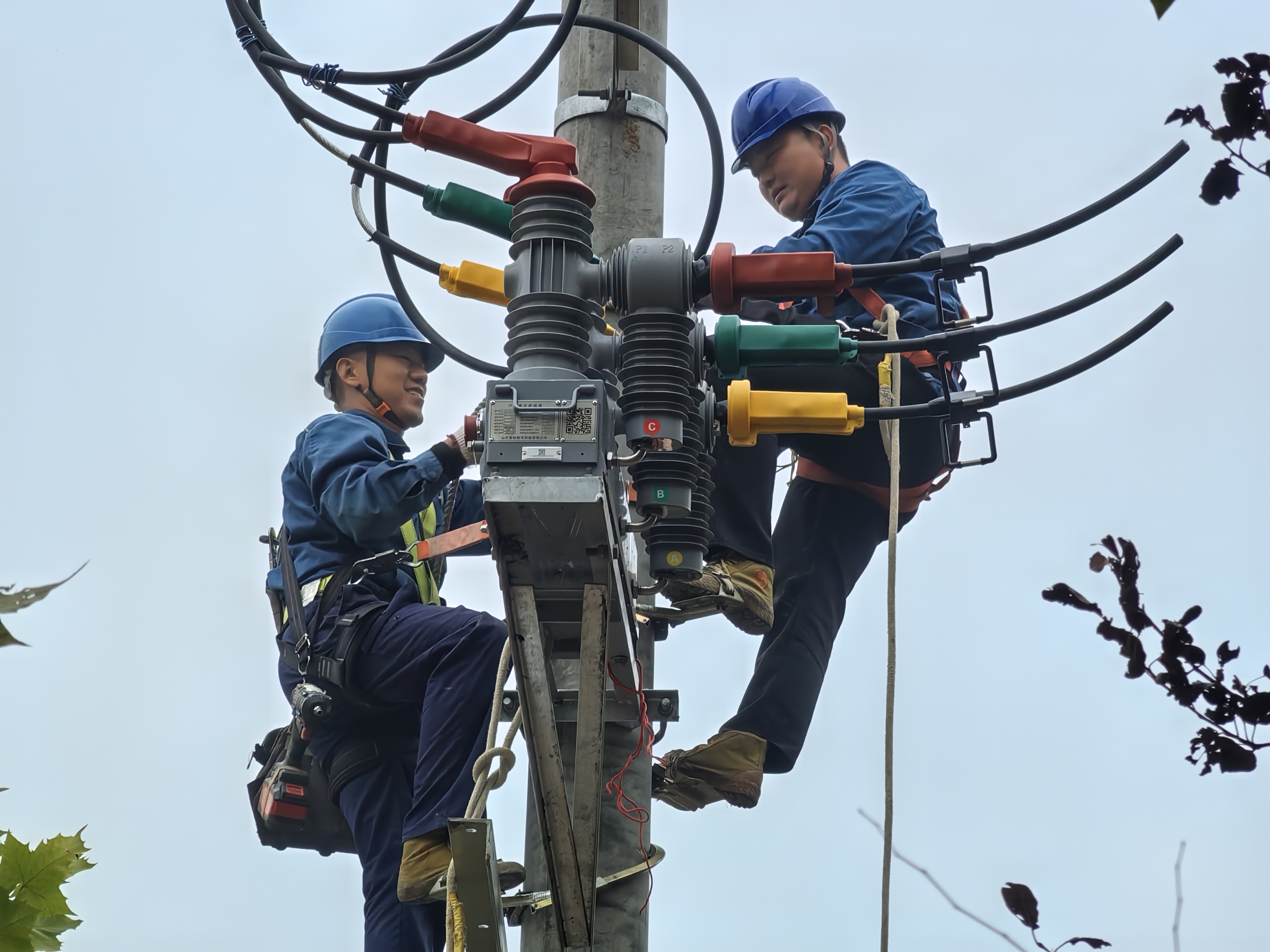 农村电气化信息网讯:(通讯员 吴敬华)10月31日,国网济宁梁山县供电公司员工在赵堌堆乡10千伏丁那里线31号杆,为山东特充电新能源科技有限公司新上变压器安装柱上一二次融合断路器、PT、FTU及相关附件,满足新能源车主充电需求,为新能源汽车产业的蓬勃发展注入澎湃“电能”。