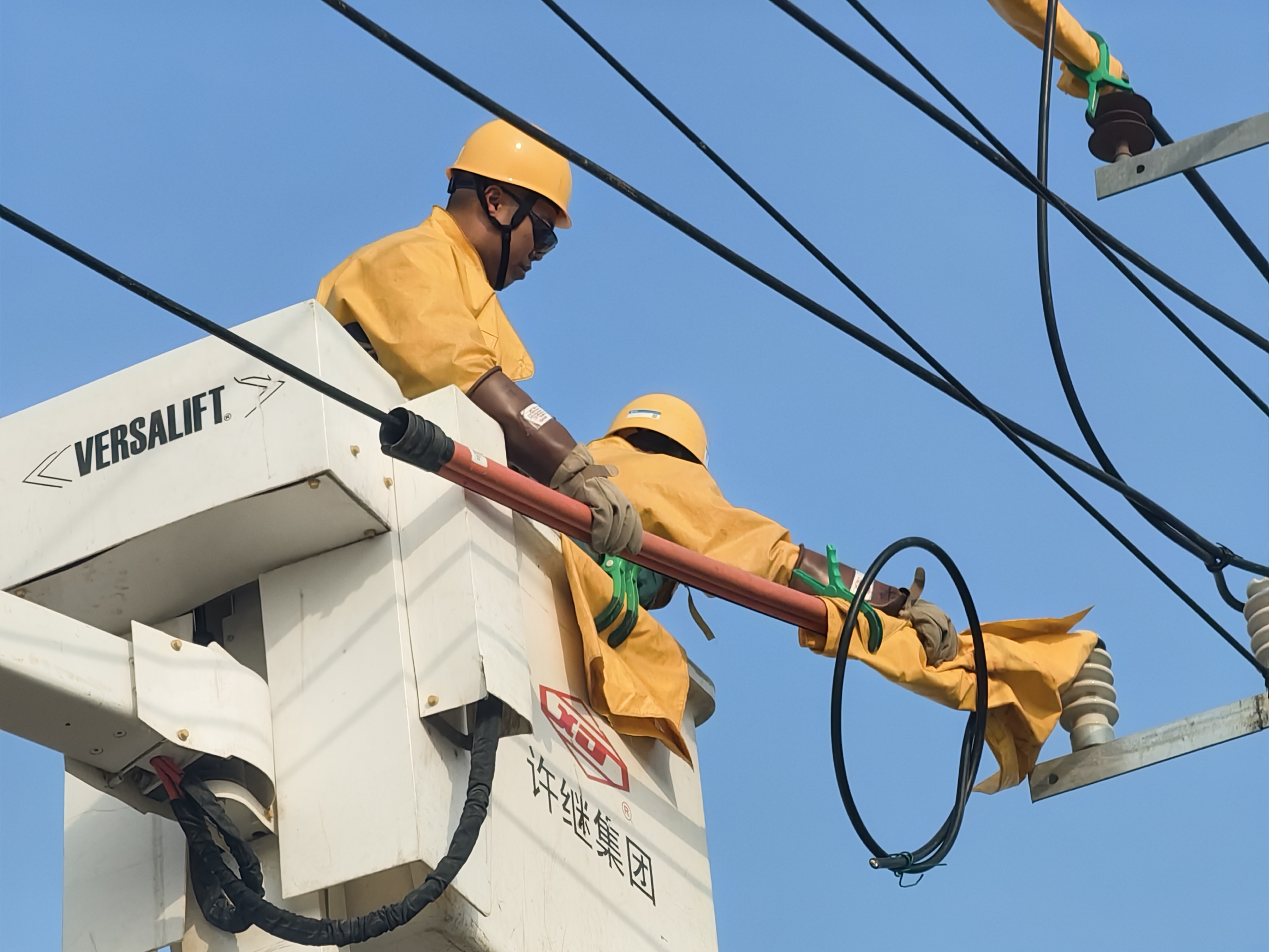 农村电气化信息网讯:(通讯员 吴敬华)11月14日,国网济宁梁山县供电公司带电作业人员在杨营镇10千伏公明东I线31号杆安装绝缘子,固定导线,接跌落式熔断器上引线,为山东梁药生物科技有限公司新上变压器接火送电,以“零停电”的方式,及时、高效地满足该企业的迫切用电需求,为地方企业发展注入强劲的“电动力”。