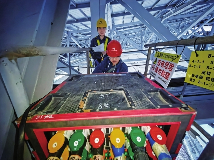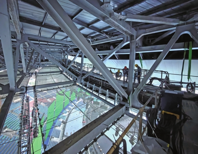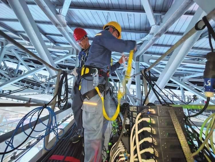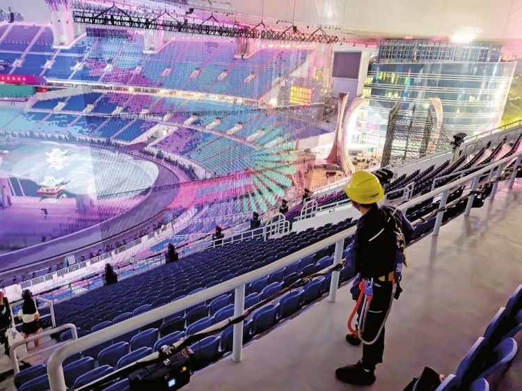 白天,马道闷热如蒸笼;夜晚,四周漆黑唯有电缆微烫。队员们每日攀爬往返最多达6次,在马道上的步数逼近两万。他们隐身于光影背后,用智慧和汗水点亮这场国家级体育盛会。