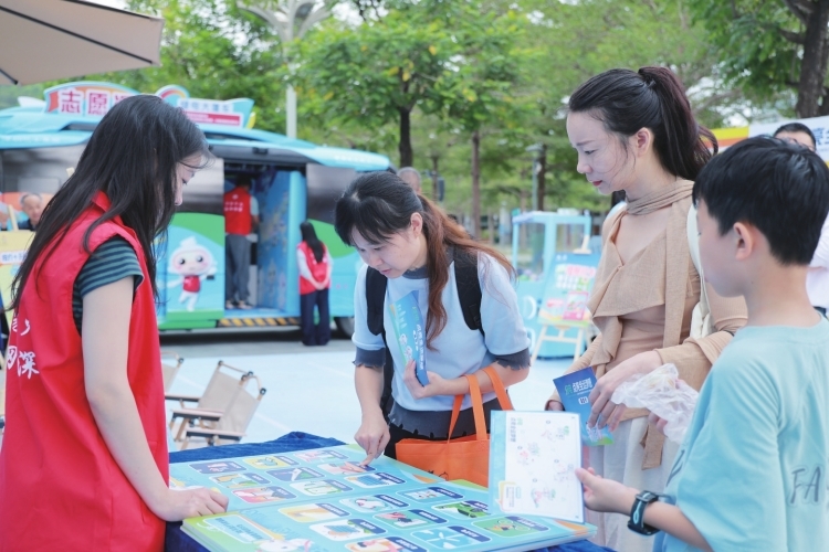 在绿电大篷车首站驻点现场,打卡游戏吸引市民参与。 黄欣琰 摄