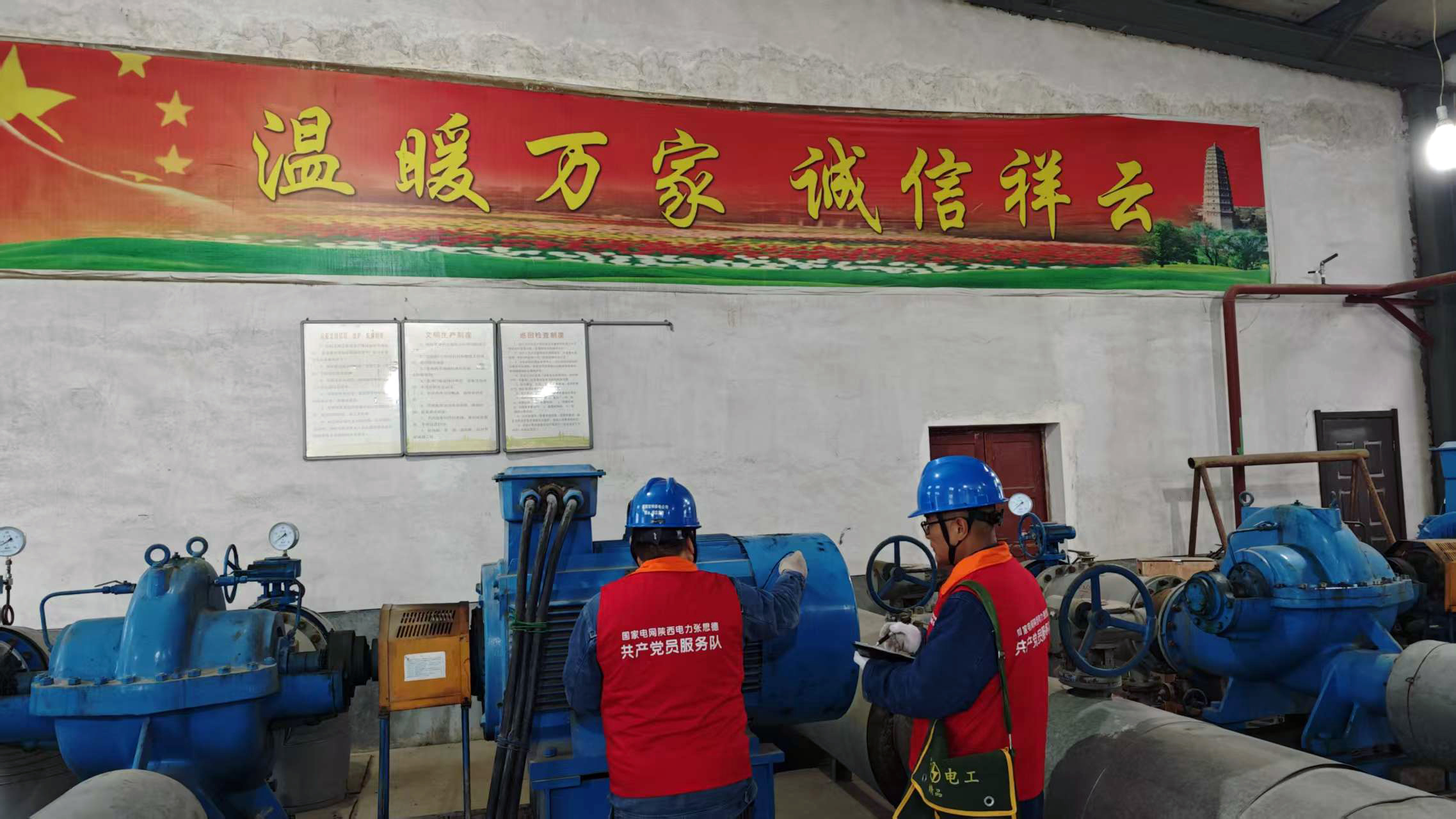 农村电气化信息网讯:(通讯员 夏禹)“站内用电设备运行一切正常,如有任何用电问题请您随时和我们联系,我们将及时为您提供优质用电服务。”11月11日,国网陕西电力(宝鸡扶风)张思德共产党员服务队2名队员前往扶风县祥云热力公司供热中心进行用电安全检查,协助用户排查用电安全隐患。
