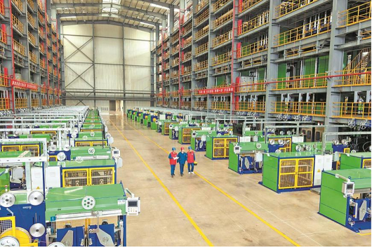 国家电网江西电力(月湖区园区)井冈先锋共产党员服务队队员到制造企业车间开展用电服务。