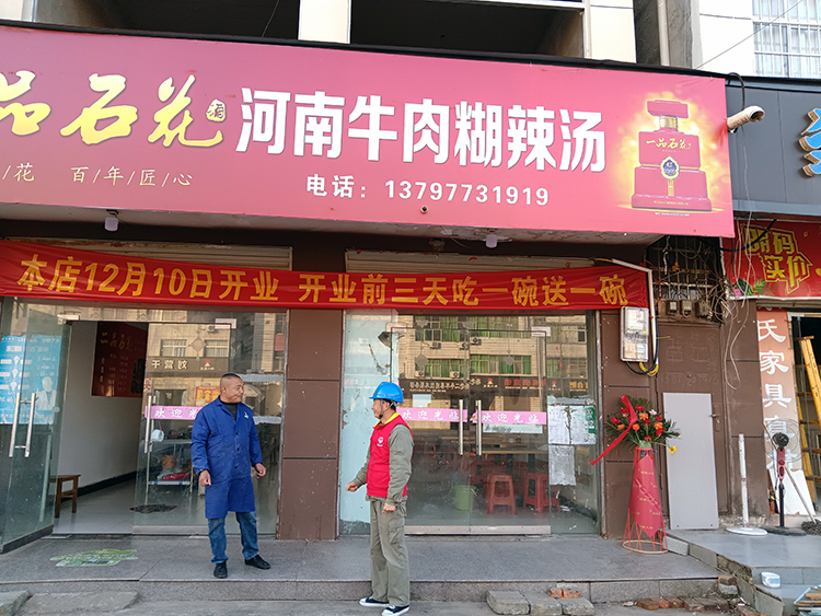河南牛肉胡辣汤12月10日开业,开业当天就红火的很,老板李从定以前在村里开胡辣汤店,村李生意还是不好做,现在转移阵地到镇上租几间门面,扩大规模,好好干。扩大规模需要增加很多电厨具,一部分电厨具要用三相电源。李从定急忙联系了供电所网格员邓海涛。