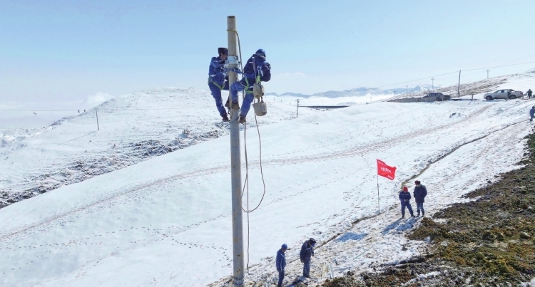 云南电网昭通永善供电局对10千伏线路进行抗冰加固。 吴学迁 摄